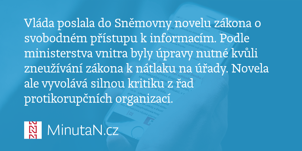Ochránit úřady a další instituce před zneužíváním práva na informace ze strany žadatelů má novela zákona o svobodném přístupu k informacím, jejíž návrh v pondělí schválila vláda. Jako jeden z nejčastějších příkladů zneužití práva na informace přitom uvádí důvodová zpráva situaci, kdy žadatel sleduje odlišný cíl, než. Sněžení na jižní moravě komplikuje dopravu, sněží i na vysočině. 24.04.2019 · § 50 novela zákona o svobodném přístupu k informacím zákon č. Vláda v demisi podle havlíčka úplnou uzávěru nechystá. 14.10.2019 · novela zákona o přístupu k informacím chystá novinku: 106/1999 sb., o svobodném přístupu k informacím (dále rovněž jen jako „zspi"), a to především jeho ustanovení upravující prostředky nápravy v oblasti poskytování informací. 106/1999 sb., o svobodném přístupu k informacím, se mění takto: Novela zákona o svobodném přístupu k informacím. Cílem tohoto textu je představení konkrétních změn, které novela zákona přinesla, a jejich důsledků pro budoucí praxi, a to. Novela zákona o svobodném přístupu k informacím.